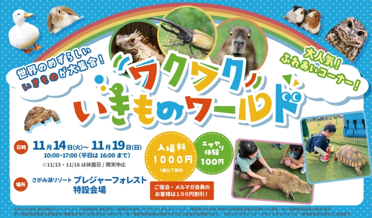 [神奈川] 11月14日(火)~11月19日(日) ワクワクいきものワールド in さがみ湖リゾートプレジャーフォレスト